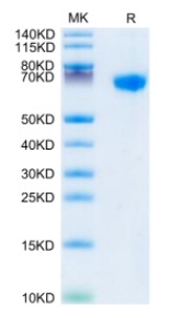 Molecular Mass : | The protein has a predicted MW of 48.5 kDa. Due to glycosylation, the protein migrates to 60-70 kDa based on Tris-Bis PAGE result. |