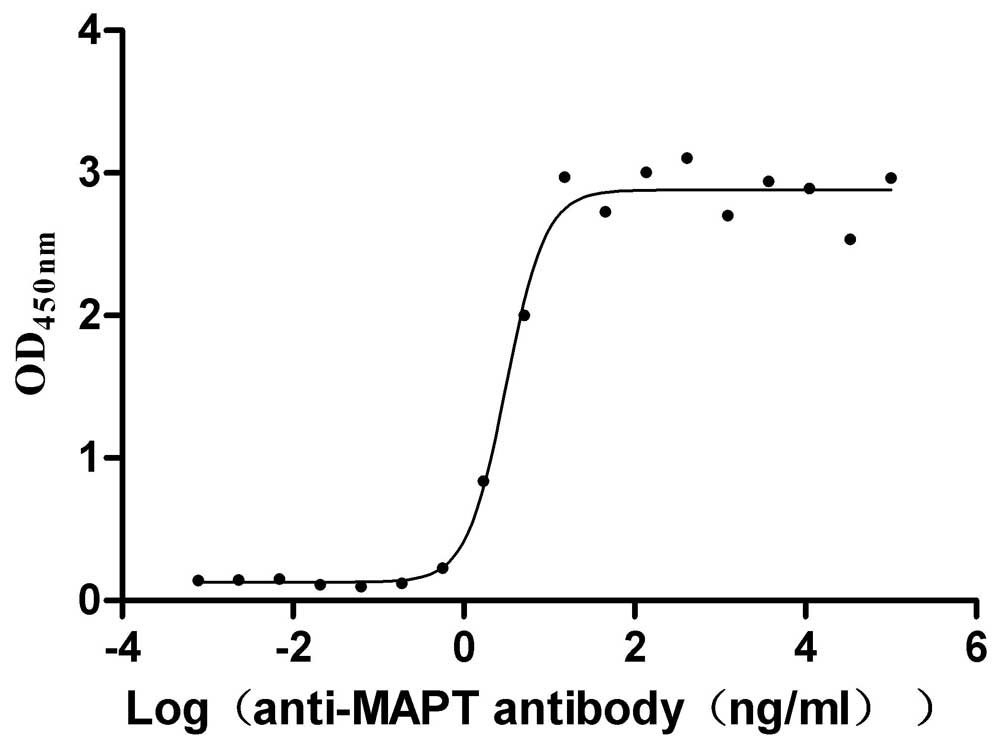 Measured by its binding ability in a functional ELISA. Immobilized Macaca mulatta MAPT at 2 μg/mL can bind anti-MAPT recombinant antibody, the EC50 is 2.464-3.979 ng/mL. |