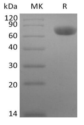 Molecular Mass : | The recombinant Rhesus Macaque TNFRSF1B Protein has a predicted molecular mass of 52kDa, it migrates with an apparent molecular mass of 60-80kDa under reducing conditions. |
