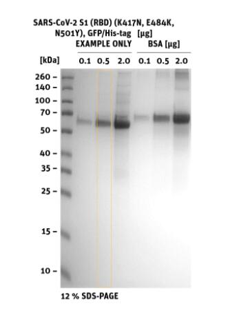 Recombinant SARS-CoV-2 (Beta, B.1.351 (South Africa)) S1 (RBD) (K417N, E484K, N501Y) Protein (AA 319-541), C-GFP/His-Tagged