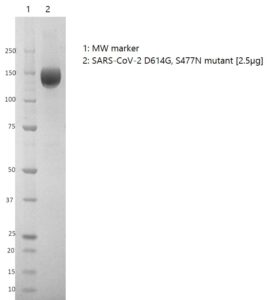 | Product Overview : | SARS-CoV-2 spike D614G, S477N mutant subunit 1 (SARS-CoV-2/human/AUS/VIC4223/2020 strain) contains Spike protein 1-674, C-terminally tagged with sheep Fc was manufactured in HEK293 cells and purified from culture supernatant by Protein G chromatography. |
