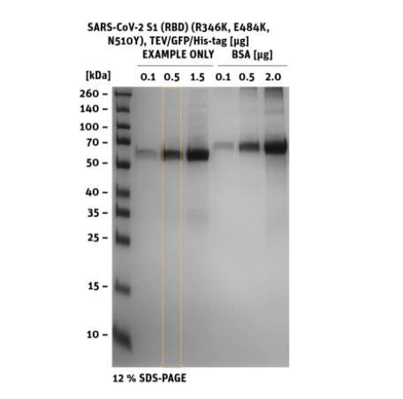 Recombinant SARS-CoV-2 (Mu B.1.621 (Columbia)) S1 Protein (RBD) (R346K, E484K, N510Y) (AA 319-541), C-GFP/His-Tagged (cleavable)