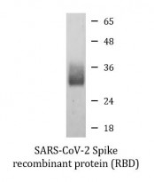 | Description : | Severe acute respiratory syndrome coronavirus 2 (SARS-CoV-2) is an enveloped, positive-sense, single-stranded RNA virus that causes coronavirus disease 2019 (COVID-19). Virus particles include the RNA genetic material and structural proteins needed for invasion of host cells. Once inside the cell the infecting RNA is used to encode structural proteins that make up virus particles, nonstructural proteins that direct virus assembly, transcription, replication and host control and accessory proteins whose function has not been determined.~ The structural proteins of SARS-CoV-2 include the envelope protein (E), spike or surface glycoprotein (S), membrane protein (M) and the nucleocapsid protein (N). The spike glycoprotein is found on the outside of the virus particle and gives coronavirus viruses their crown-like appearance. This glycoprotein mediates attachment of the virus particle and entry into the host cell. S protein is an important target for vaccine development, antibody therapies and diagnostic antigen-based tests. |