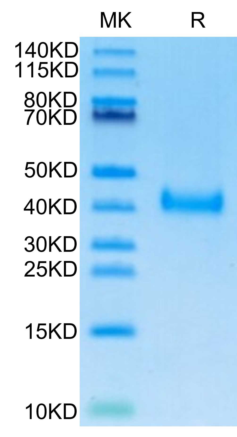 | Molecular Mass : | The protein has a predicted MW of 26.09 kDa. Due to glycosylation, the protein migrates to 38-48 kDa based on Tris-Bis PAGE result. |