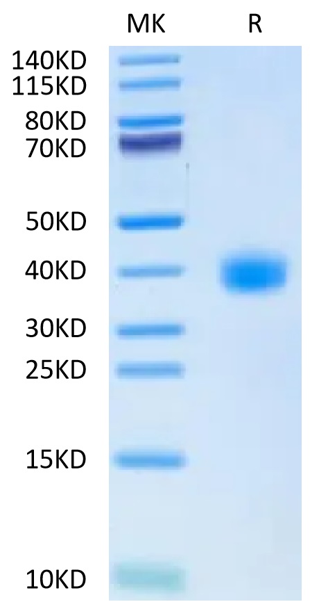 | Molecular Mass : | The protein has a predicted MW of 26.07 kDa. Due to glycosylation, the protein migrates to 35-45 kDa based on Tris-Bis PAGE result. |