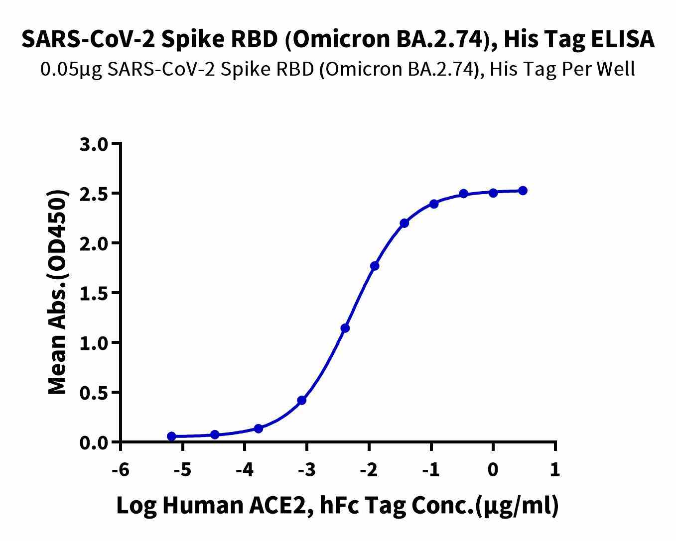 | Bio-activity : | Immobilized SARS-CoV-2 Spike RBD (Omicron BA.2.74), His Tag at 0.5μg/ml (100μl/well) on the plate. Dose response curve for Human ACE2, hFc Tag with the EC50 of 5.3ng/ml determined by ELISA. |