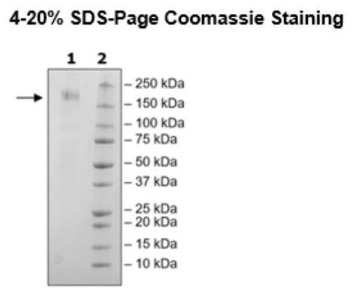 | Product Overview : | Recombinant SARS-CoV-2 Spike protein in its homotrimeric form, containing S1+S2 subunits and encompassing amino acids 16-1213. This protein corresponds to SARS-CoV-2 Variant B.1.1.529 BA.1 also known as variant Omicron originally identified in South Africa, and contains A67V, Δ69-70, T95I, G142D, Δ143-145, Δ211, L212I, Ins214EPE, G339D, S371L, S373P, S375F, K417N, N440K, G446S, S477N, T478K, K484A, Q493R, G496S, Q498R, N501Y, Y505H, T547K, D614G, H655Y, N679K, P681H, N764K, D796Y, N856K, Q954H, N969K, L981F mutations. The construct also contains mutations 682RRAR685>A, K986P and V987P, and a T4 trimerization domain followed by a His-tag (6×His) in C-terminal. The recombinant protein was affinity purified. |