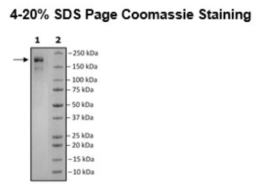 | Product Overview : | Recombinant SARS-CoV-2 Spike protein in its homotrimeric form, containing S1+S2 subunits and encompassing amino acids 16-1213. This protein corresponds to SARS-CoV-2 Variant B.1.617.2.1 also known as variant Delta Plus originally identified in India, and contains mutations T19R, G142D, R158G, K417N, L452R, T478K, D614G, P681R and D950N as well as deletion E156-F157. The construct also contains mutations 682RRAR685>A, K986P and V987P, and a T4 trimerization domain followed by a His-tag (6×His) in C-terminal. The recombinant protein was affinity purified. |