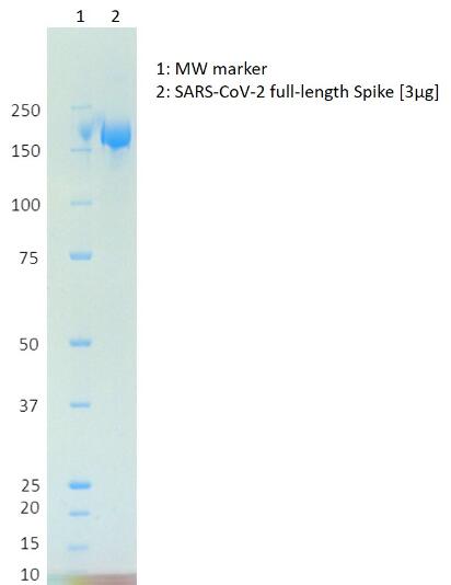 | Product Overview : | Recombinant full-length SARS-CoV-2 spike glycoprotein, manufactured in Chinese hamster ovary (CHO) cells to high yield and purity. The furin cleavage site (amino acids 682-685) has been mutated from RRAR to SRAS and the transmembrane domain and intravirion part replaced with a glycine-serine linker and a His-tag. Horseradish peroxidase conjugated protein also available. SARS-CoV-2, previously known as the 2019 Novel Coronavirus (2019-nCoV), causes the pandemic COVID-19 disease. |