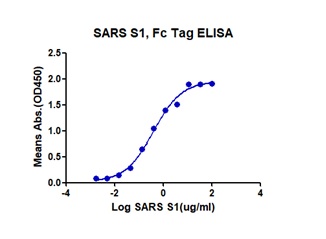 | Product Overview : | Recombinant SARS spike S1 protein is expressed from mammalian with a Fc tag and Avi at the C-terminal. It contains Ser14-Arg667. |