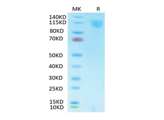 | Molecular Mass : | The protein has a predicted MW of 75.9 kDa. Due to glycosylation, the protein migrates to 120-140KDa based on Bis-Tris PAGE result. |