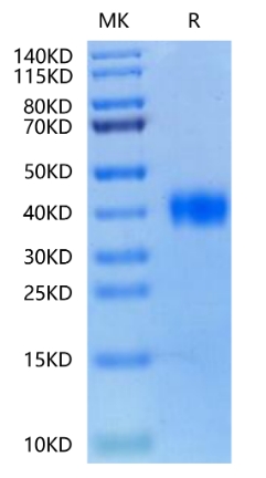 | Molecular Mass : | The protein has a predicted MW of 27.9 kDa. Due to glycosylation, the protein migrates to 36-46 kDa based on Tris-Bis PAGE result. |