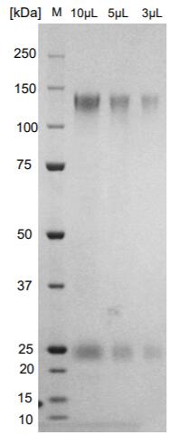 Molecular Mass : | The protein is cleaved by furin at amino acid 501 and presents as 140kDa and 25kDa fragments on reducing SDS-PAGE. |