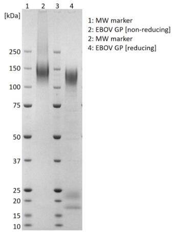 Product Overview : | Recombinant Zaire ebola virus GP was produced with a C-terminal His-tag in HEK293 cells, and purified from culture supernatant by a series of immobilised metal affinity, ion exchange and size exclusion chromatography. |