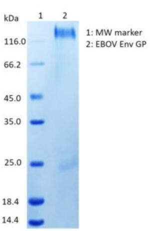 Product Overview : | Recombinant Ebolavirus (subtype Zaire, strain Kikwit-95) Envelope Glycoprotein (GP), comprising amino-acids 33-637. This protein is produced in mammalian cells with greater than 85% purity and incorporates a C-terminal 6x His-tag. |