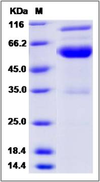 Molecular Mass : | The recombinant zebrafish EFNB2A consists of 439 amino acids and has a calculated molecular mass of 48.9 kDa. It migrates as an 97 and 58 KDa band in SDS-PAGE under reducing conditions. |