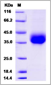 Molecular Mass : | The recombinant zebrafish EFNB2A consists of 209 amino acids and has a calculated molecular mass of 23.3 kDa. It migrates as an 35-40 KDa band in SDS-PAGE under reducing conditions. |