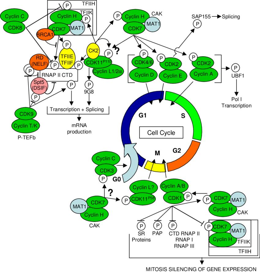- Loyer P, Trembley JH, Katona R, Kidd VJ, Lahti JM. Role of CDK/cyclin complexes in transcription and RNA splicing. Cell Signal. 2005;17(9):1033-1051