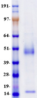 Notch receptor is a type I membrane protein with the relative molecular weight of about 30,000. There are four types of human Notch receptors: Notch1~4. It consists of extracellular and transmembrane subunits, and the two subunits form heterodimers via Ca2+ dependent non-covalent bonds. The extracellular subunit contains a set of tandemly arranged EGFR (epidermal growth factor receptor) and 3 family-specific LNR (Lin-12/Notch repeat) repeats. EGFR plays a pivotal role in the binding of Notch receptors to ligands. In Drosophila, the 11th and 12th EGFR of Notch receptors mediate their binding to ligands. LNR, located downstream of EGFR, is rich in cysteine and mediates a Ca2+ dependent interaction between the two subunits. Transmembrane subunits include transmembrane regions, RAM sequences, ankyrin (ANK) repeats, nuclear localization sequences, polyglutamine sequences, and PEST sequences (a peptide sequence that is rich in proline (P), glutamic acid (E), serine (S), and threonine (T)). The RAM domain is the major binding site for the Notch signaling effector CBF1 / RBPJκ. The ANK repeat domain is the binding site of Deltex and Mastermind. These proteins have a function of modification to the Notch signaling pathway. The PEST domain is associated with ubiquitin-mediated degradation of the Notch intracellular domain.