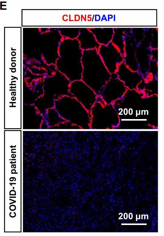 Fig2. Immunofluorescent staining for CLDN5 in the lungs of patients with or without COVID-19.