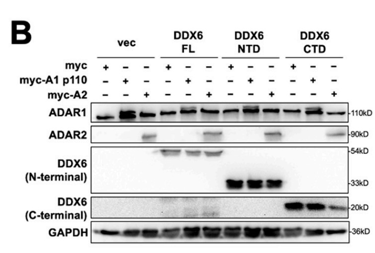 Fig3. Anti-DDX6 immunoprecipitation was conducted in HEK293T cells that overexpressed ADAR1.