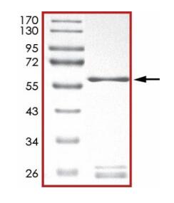 | Storage Buffer : | Recombinant protein stored in 50mM Tris-HCl, pH 7.5, 150mM NaCl, 10mM glutathione, 0.1mM EDTA, 0.25mM DTT, 0.1mM PMSF, 25% glycerol. |